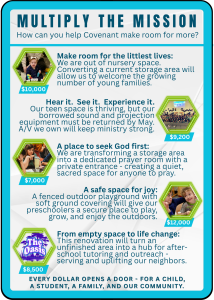 Covenant Church is creating space to serve more families, children, and students through the “Multiply the Mission” initiative. This effort focuses on expanding nursery space,